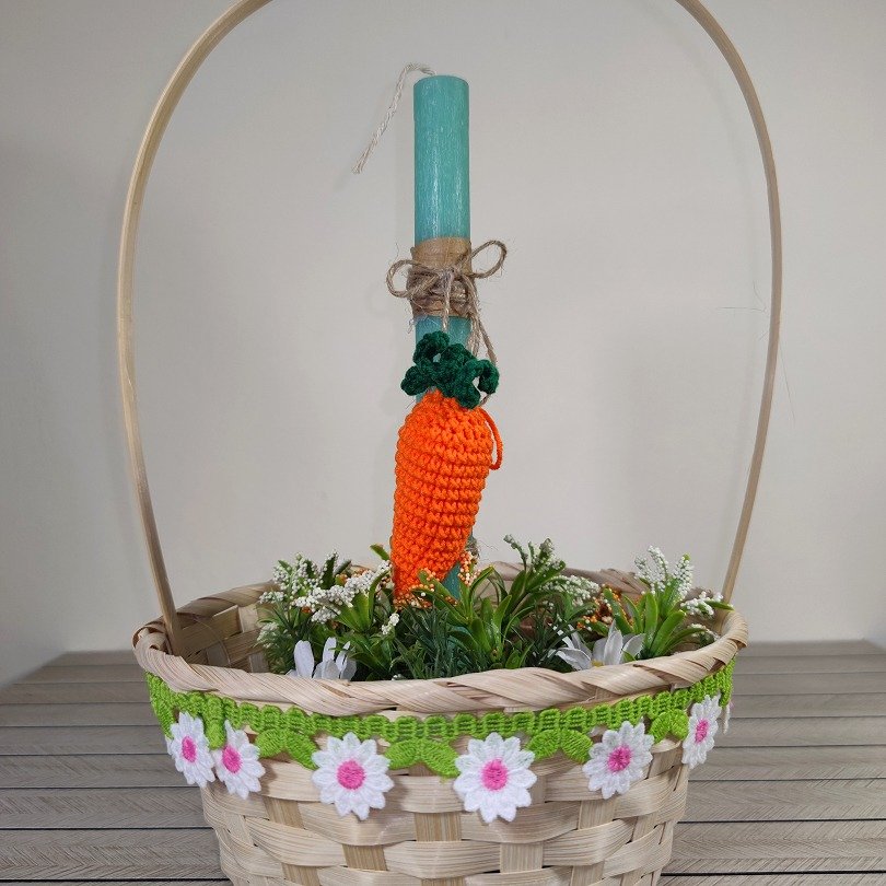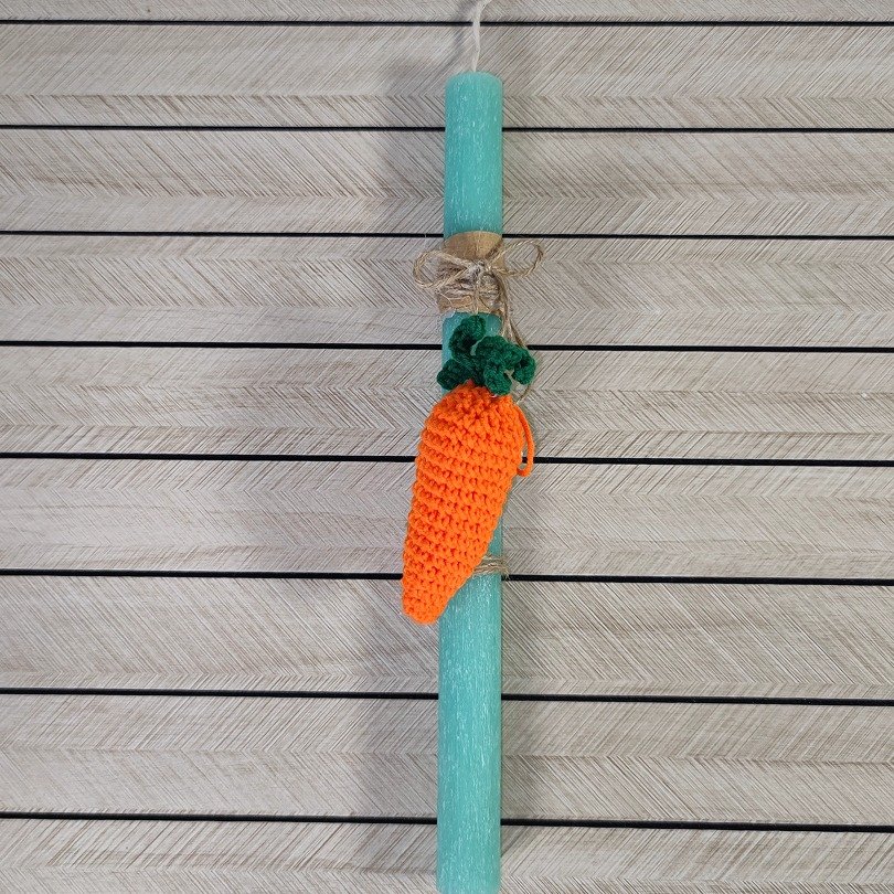 Χειροποίητη Πασχαλινή Λαμπάδα με Πλεκτό Καρότο (Τυρκουάζ)